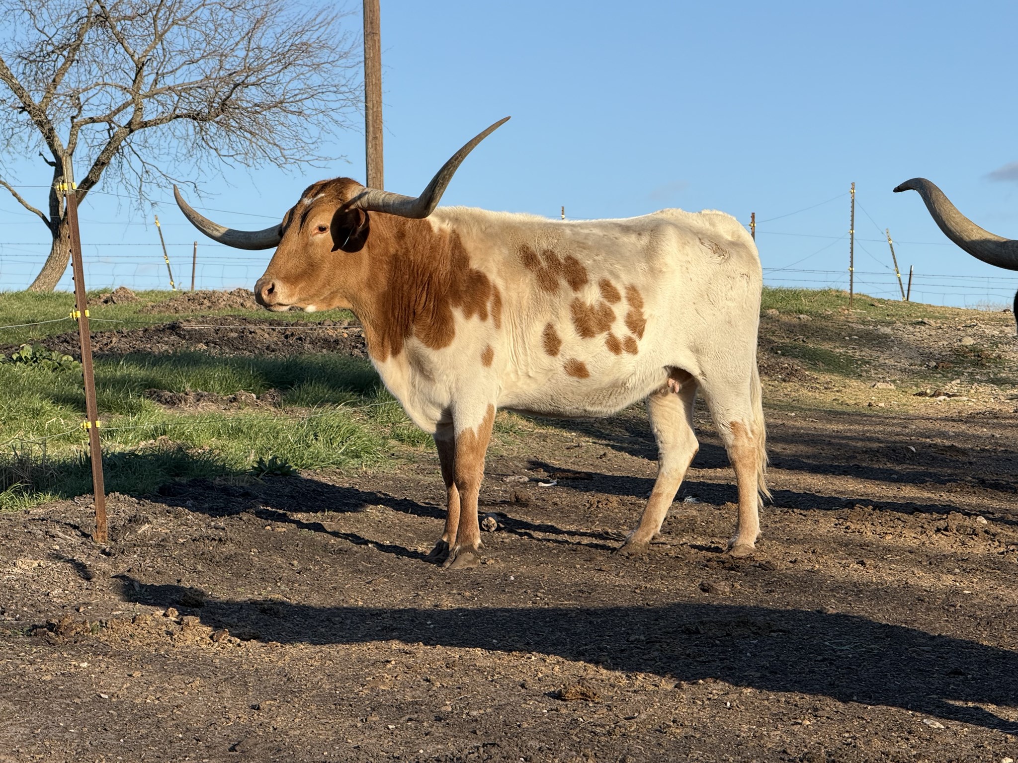 Cranberry is a daughter out of J.R. Laredo and CO Cherry Coke. On the top we have KC Just Respect, Hunts Demands Respect, J.R. Liberty, J.R. Ramrod and J.R. Lasso. On the bottom we have Winner's Edge, Winchester, Queen Of Not, CO Coment, and CO Super Squaw. Cranberry has a pretty light dunn almost brindle color during the change of seasons, she is tall, has the demeanor and horn growth.