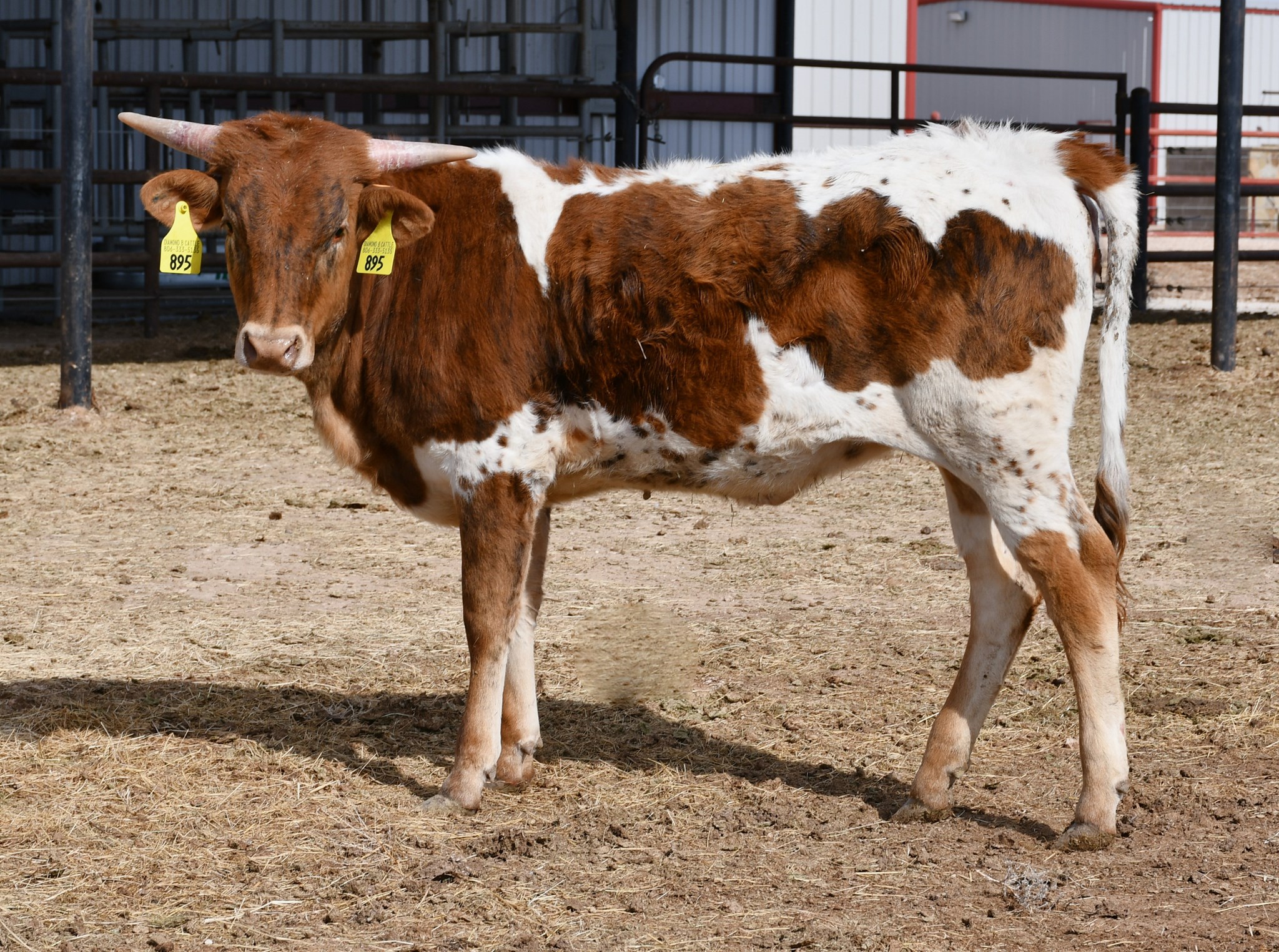 Cleo is a product of stacking 100 inch genetics. Sire and dam both over 100 ttt, and the winner of bronze trophies, superior cow, futurity classes, and the Bull Alley Guitar. This Cut'N Dried on top of a Rebel daughter cross is working. She has phenomenal early horn growth and coloring coming in daily. Cowboy Tuff Chex (108TTT), Cut n Dried (100.4TTT), Dragon Pearl (80+TTT), Drag Iron, Rebel HR (90TTT), Slams Rose (97TTT), Kinetic (106.75TTT)