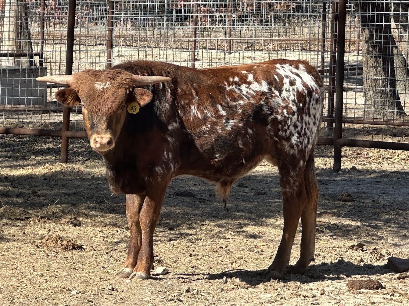 Investor is a colored up young bull. His sire is well known in the longhorn industry BR Mr Right. His grand dam, is a big crimson red Ursela Allen bred cow Penny Investor. He is greats in his pedigree Drag Iron, Helm Lauras Light Mocha, double dose of WS Jamakism. One to watch.