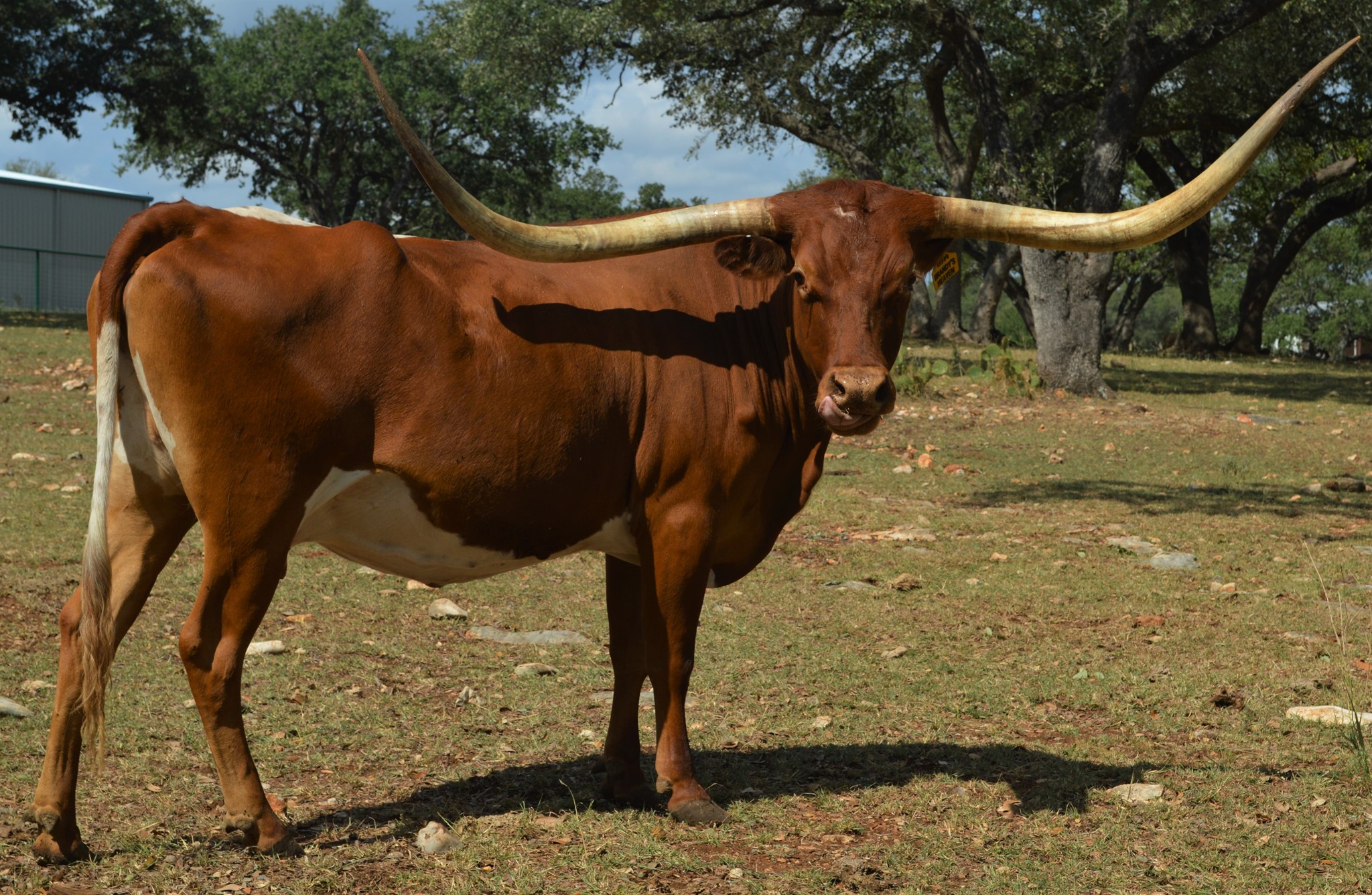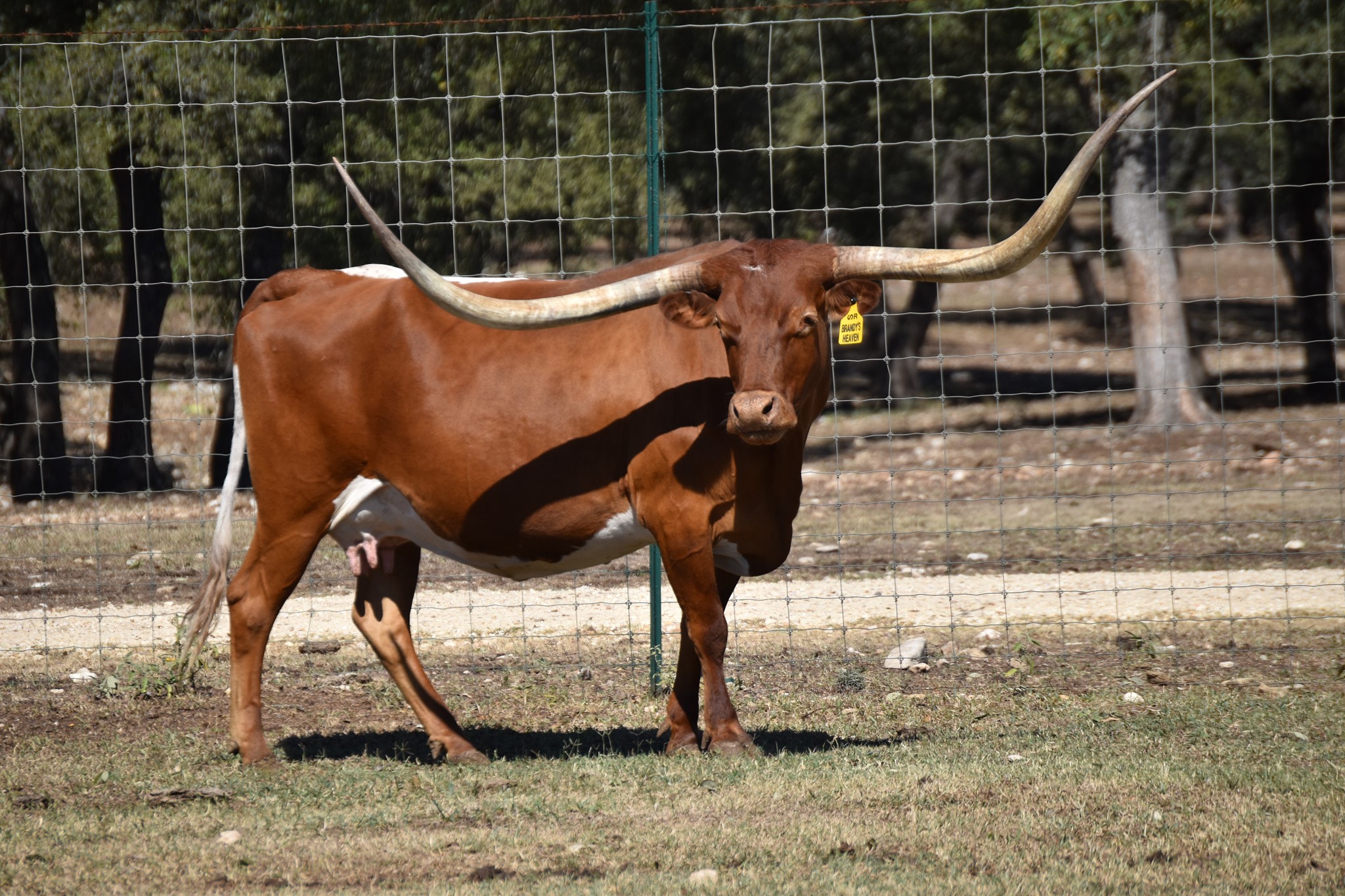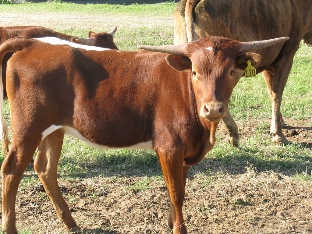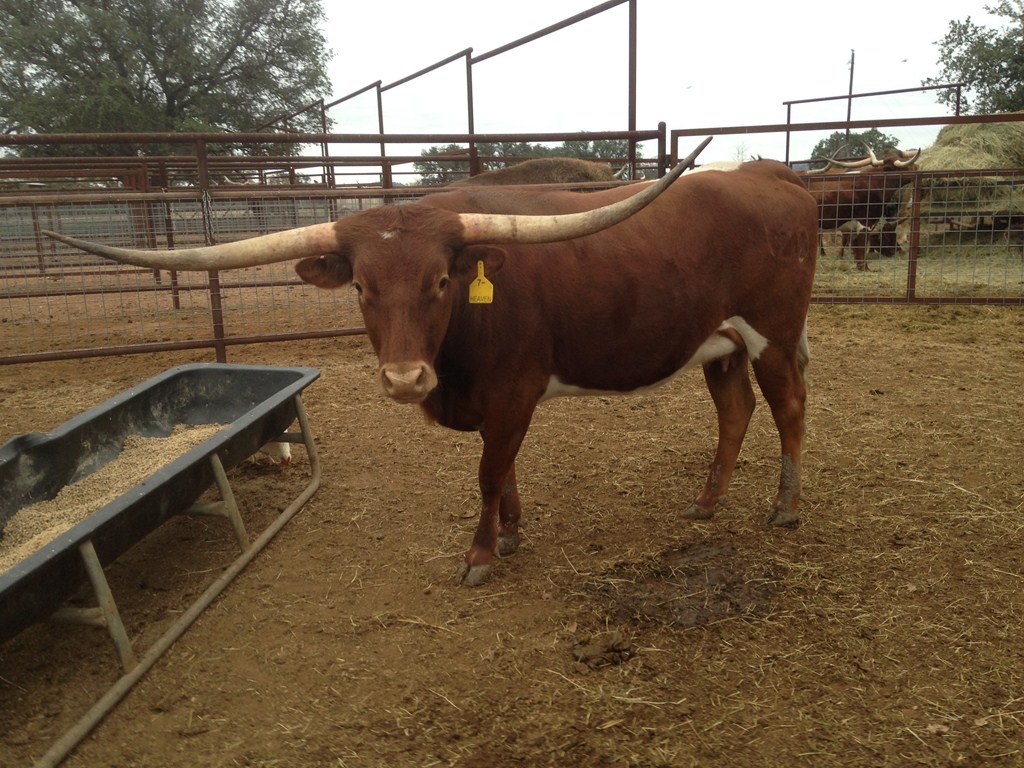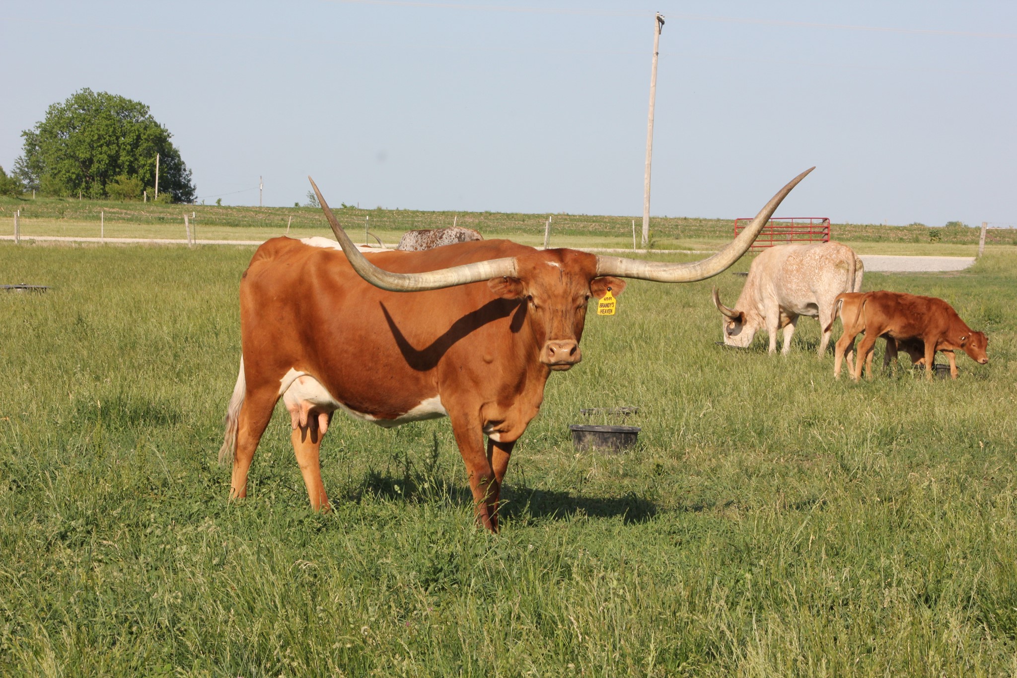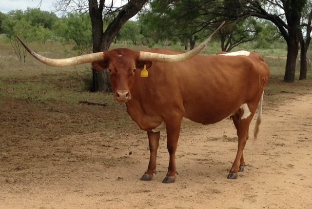 Brandy is one of the sweetest in the pasture. She is the one everyone notices. Cool horn set and will eat treats out of your hand! We are looking forward to her 2024 calf by Cowboy's Casanova Pride