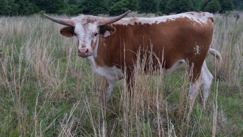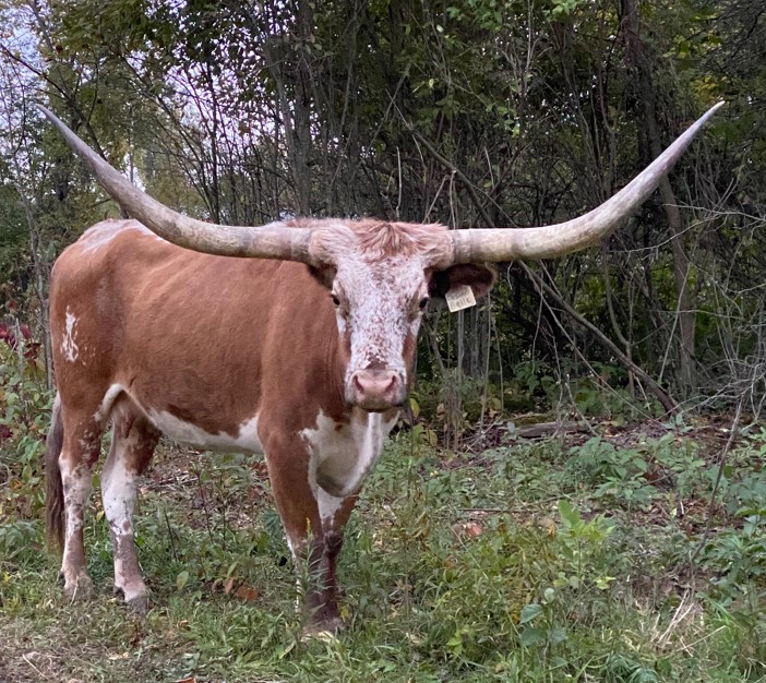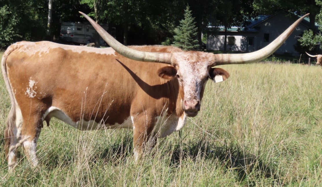 This colorful 5 year old, straight Butler cow has been an phenomenal producer for us. We have Belle’s 2017 daughter and her full sister in our herd, which gives us the opportunity to offer her now. Belle works well with blend as well as straight Butler genetics, is a good momma, a great milker and easy to be around. Whether you want to raise straight Butler cattle or add Butler horn genetics to your blend herd, Belle will be a great addition. She sells exposed to Patriot HR from June 15th to sale date. She is tested negative for TB, Brucellosis, & Johnes.